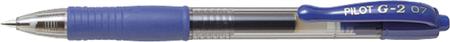 Gelpen Pilot BL-G2-5 extra fine. Kuglediameter 0,5mm. Stregbredde 0,3mm. Med trykmekanisme. Synlig blækstand. Gummigreb, clip og top i skrivefarve. 1 pakke med 12 stk Gelpen blå Pilot BL-G2-5 kuglediameter 0,5mm. Stregbredde 0,3mm. Med trykmekanisme. Synl